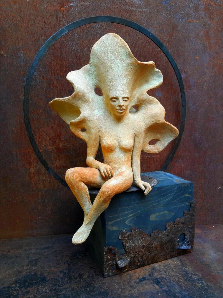 En contemplation, ou en pleine rêverie, mes personnages sont le reflet d’une introspection ….. d’une recherche intérieure profonde, une quête d’absolu ….
